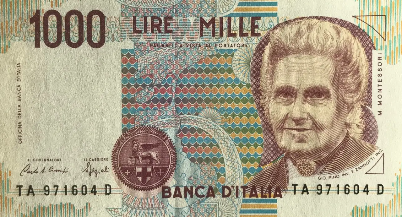 Tra queste figure di spicco emerge Maria Montessori, l’unica donna che in Italia (ma la seconda nel mondo dopo la regina Elisabetta II), ad essere rappresentata su una banconota, quella da Mille lire, dal colore rosa e inconfondibile, che entrava in vigore nel 1990 e rimasta attiva fino alla dismissione della Lira in favore dell’euro nel 2002.